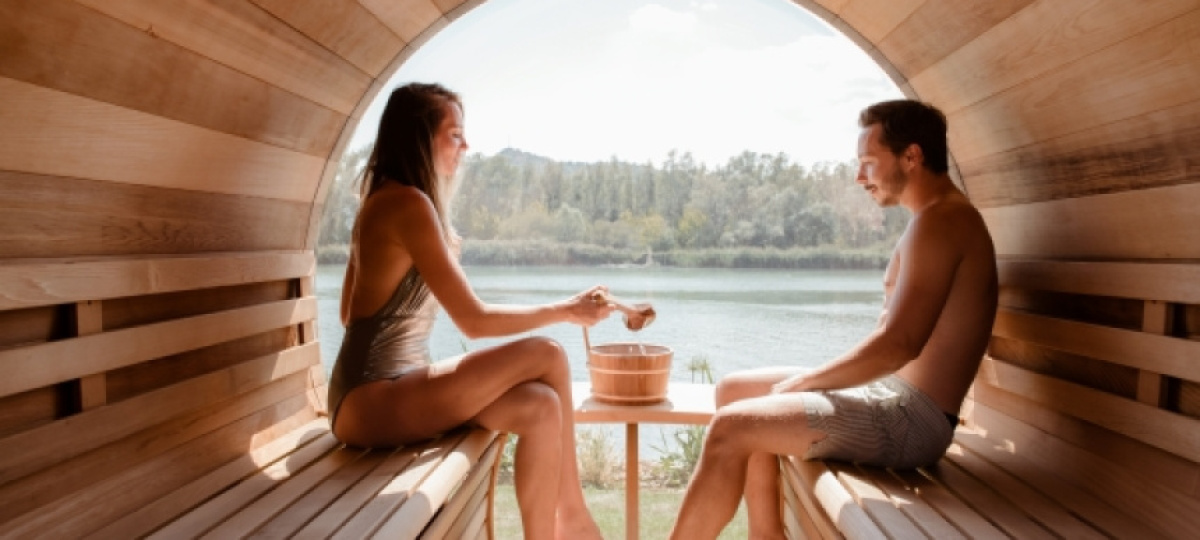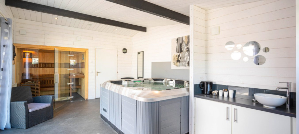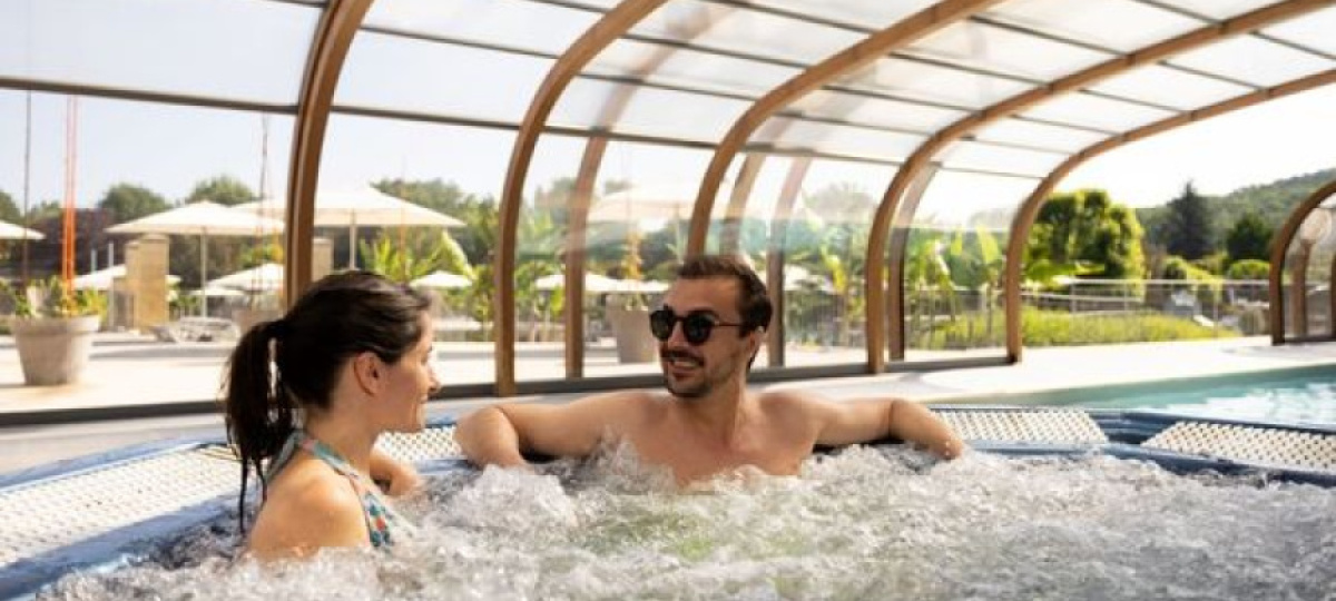 Le plaisir d'un spa privatif dans un camping de luxe : sauna ou jacuzzi sur la terrasse de votre mobil-home