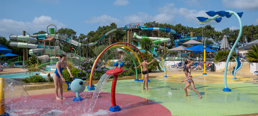 L’aire de jeux aqualudique invite les enfants à s’amuser sans limite entre jets d’eau, brumisateurs, canons à eau et cascades.